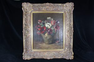 F05009 – Marvellous painting, still life, vase with a bouquet of anemone flowers made by Dutch master Emanuel (Manus) van der Ven (1866 – 1944). Oil on canvas.